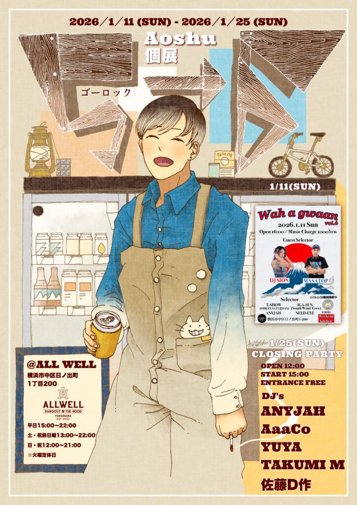 2026年1月、ALLWELL(神奈川・日ノ出町)にてAoshu個展「5→6(ゴーロック)」を開催します。